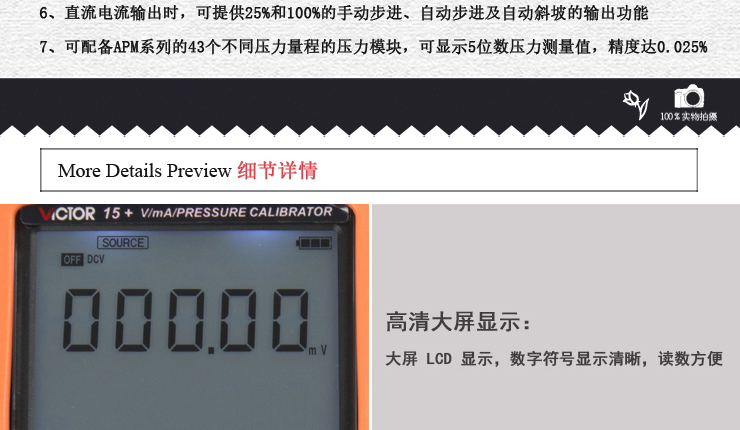 VICTOR 15+ VmA壓力校驗(yàn)儀是一款0.02%精度的高性能過程校驗(yàn)儀,具有模擬輸出直流電壓、直流電流、模擬變送器、頻率、脈沖個(gè)數(shù)等功能,同時(shí)具備測量直流電壓、直流電流、頻率、通斷測試以及壓力測量等功能;該儀表開放通訊協(xié)議,便于二次開發(fā)。