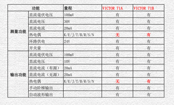 | 新老款VICTOR 71AB功能區(qū)別 | |