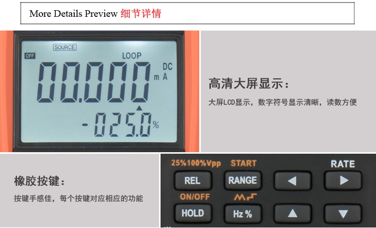 5. 大屏LCD雙顯示,帶白色LED背光。