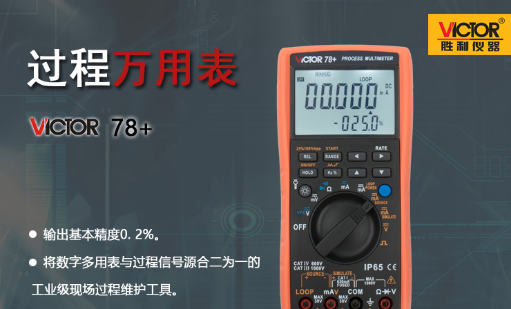 VICTOR 78+ 過程萬用表是一款將數(shù)字萬用表與過程信號源合二為一的工業(yè)級現(xiàn)場過程維護工具。該過程萬用表在石油化工、生物制藥、工業(yè)自動化、大專院校和科研機構(gòu)等領(lǐng)域的得到了廣泛的應(yīng)用。