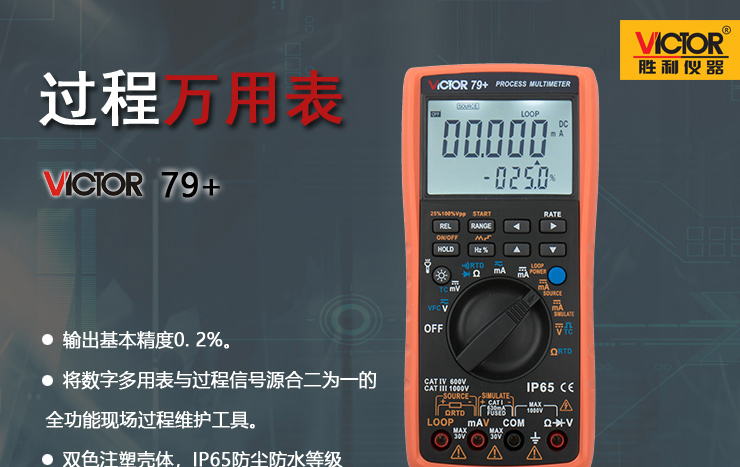 VICTOR 79+ 過程萬用表是一款將數(shù)字萬用表與過程信號源合二為一的工業(yè)級現(xiàn)場過程維護工具。該過程萬用表在石油化工、生物制藥、工業(yè)自動化、大專院校和科研機構(gòu)等領(lǐng)域的得到了廣泛的應(yīng)用。