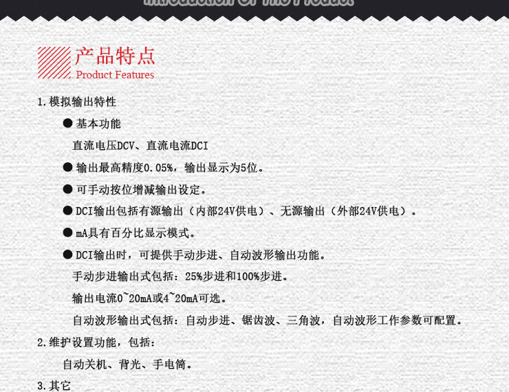 模擬輸出功能 [適用于校準(zhǔn)后一年內(nèi)、23℃±5℃、20~70%RH、精度=±(%設(shè)定值+字)]