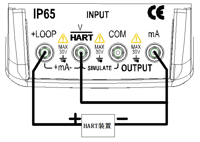 在mA測量模式中,本儀表處于回路中,回路電源由外部提供。