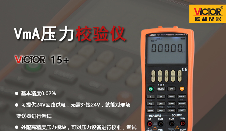VICTOR 15+ VmA壓力校驗(yàn)儀是一款0.02%精度的高性能過程校驗(yàn)儀,具有模擬輸出直流電壓、直流電流、模擬變送器、頻率、脈沖個(gè)數(shù)等功能,同時(shí)具備測量直流電壓、直流電流、頻率、通斷測試以及壓力測量等功能;該儀表開放通訊協(xié)議,便于二次開發(fā)。