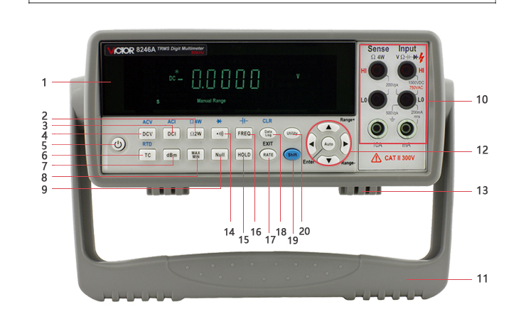 10A | 0~20.000A | 0.001 A | 2%+40 | 1.5%+20 | 3%+80 | ----- | ----- |