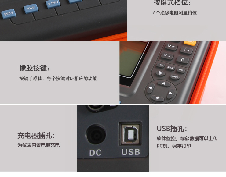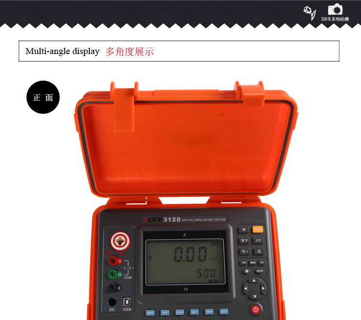 VICTOR 3128 高壓絕緣電阻測試儀包含6個電壓等級:500V、1000V、2500V、5000V、10KV、15KV。最大50TΩ絕緣電阻測試。直流電壓測量范圍0~1000V,交流電壓測量范圍0~750V。具有USB接口,軟件監(jiān)控,存儲數(shù)據(jù)可以上傳PC機(jī),保存打印。
