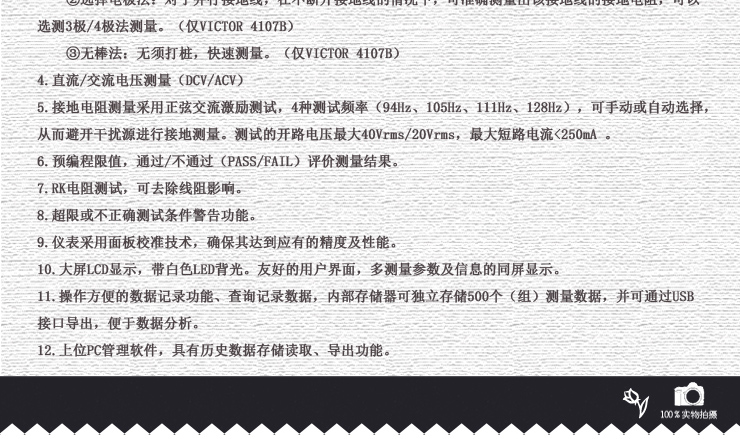 VICTOR 4107B 接地電阻測試儀 技術(shù)指標(biāo)