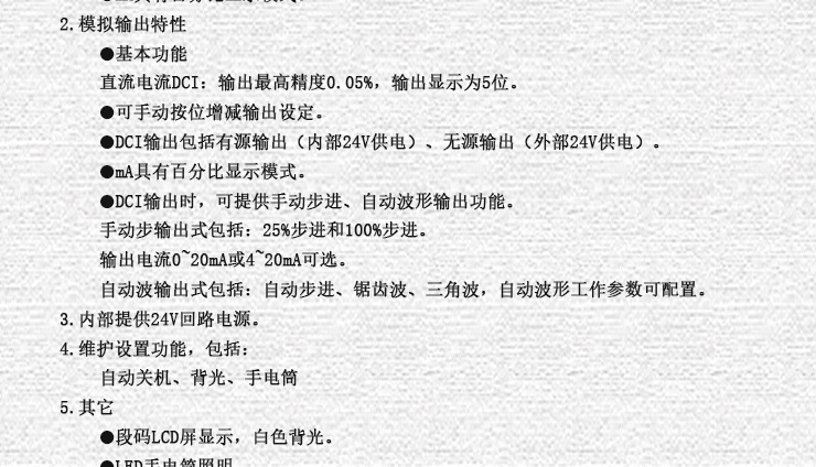 模擬輸出功能 [適用于校準(zhǔn)后一年內(nèi)、23℃±5℃、20~70%RH、精度=±(%設(shè)定值+字)]