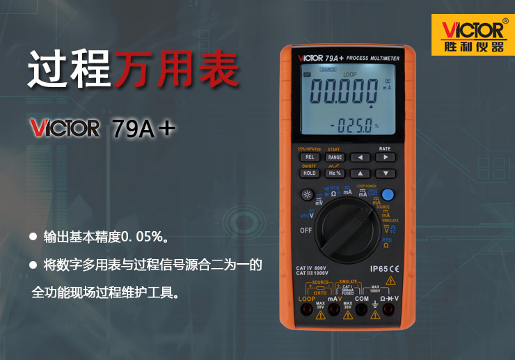 VICTOR 79A+過程萬用表是一款將數(shù)字多用表與過程信號(hào)源合二為一的現(xiàn)場(chǎng)過程維護(hù)工具