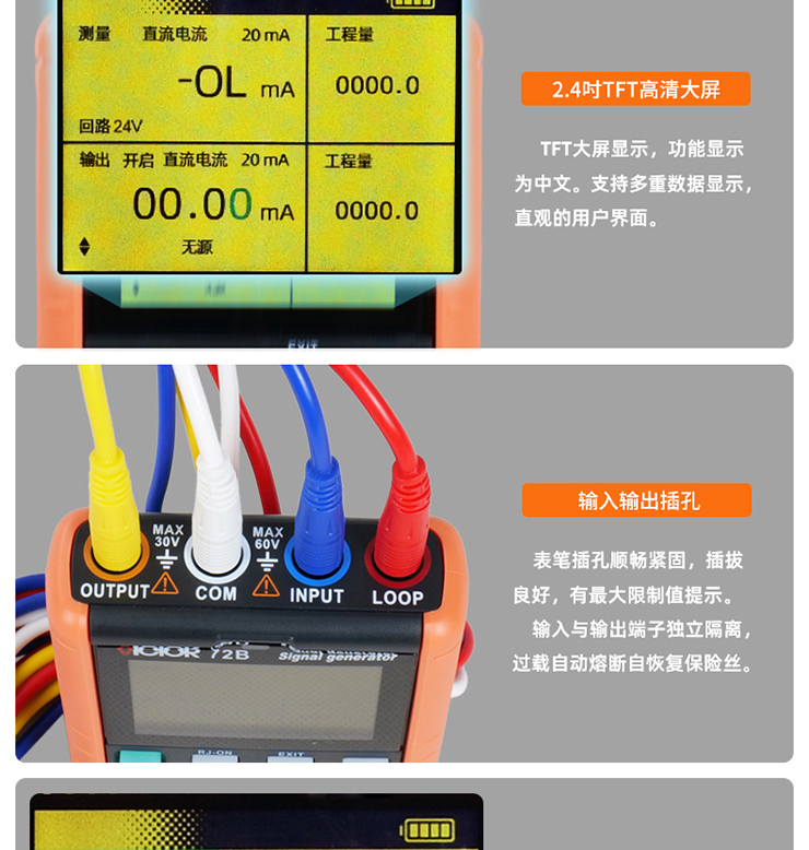 VICTOR 72A是一款鋰電池供電的便攜式掌上信號發(fā)生器,可用于測量直流電壓、直流電流、通斷,可模擬輸出直流電壓、直流電流。適用于現(xiàn)場變送器、DCS、PLC等系統(tǒng)的調(diào)試和校準(zhǔn)。VICTOR 72A在石油化工、生物制藥、工業(yè)自動化、大專院校和科研機(jī)構(gòu)等領(lǐng)域的得到了廣泛的應(yīng)用,是工程師、技術(shù)工人及科研人員的“口袋級”實(shí)用工具。