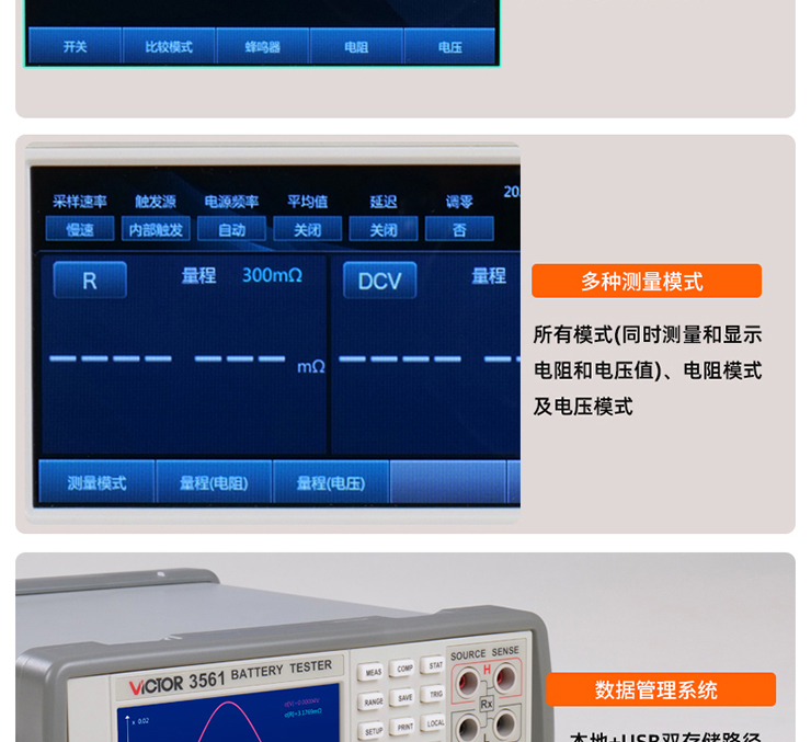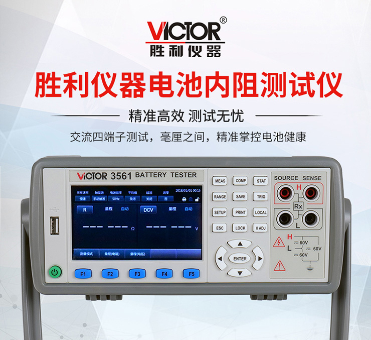 VICTOR 356X系列電池內(nèi)阻測試儀廣泛應用于手機鋰電池、蓄電池以及動力電池等各種電池的測試。采用交流四端子測試方法,可更精準地測試電池的內(nèi)阻和電壓。內(nèi)建比較器功能,可自動判斷電池參數(shù)是否符合標準,以便統(tǒng)計合格率,適合各種電池檢測和分揀的場景。