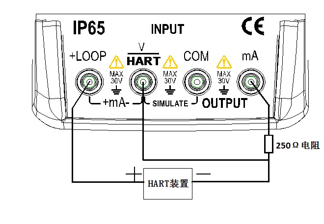 在mA測量模式中,本儀表處于回路中,回路電源由外部提供。